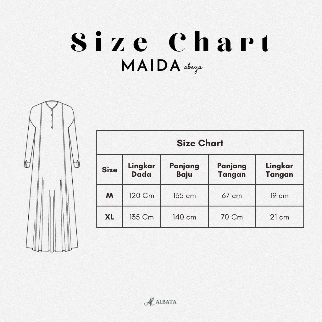 Maida Abaya membuat tampilan tetap rapi dan anggun dalam berbagai kesempatan. Sentuhan akhir berupa label gold di bagian tangan menegaskan kesan mewah dan menjadi ciri khas Albata.