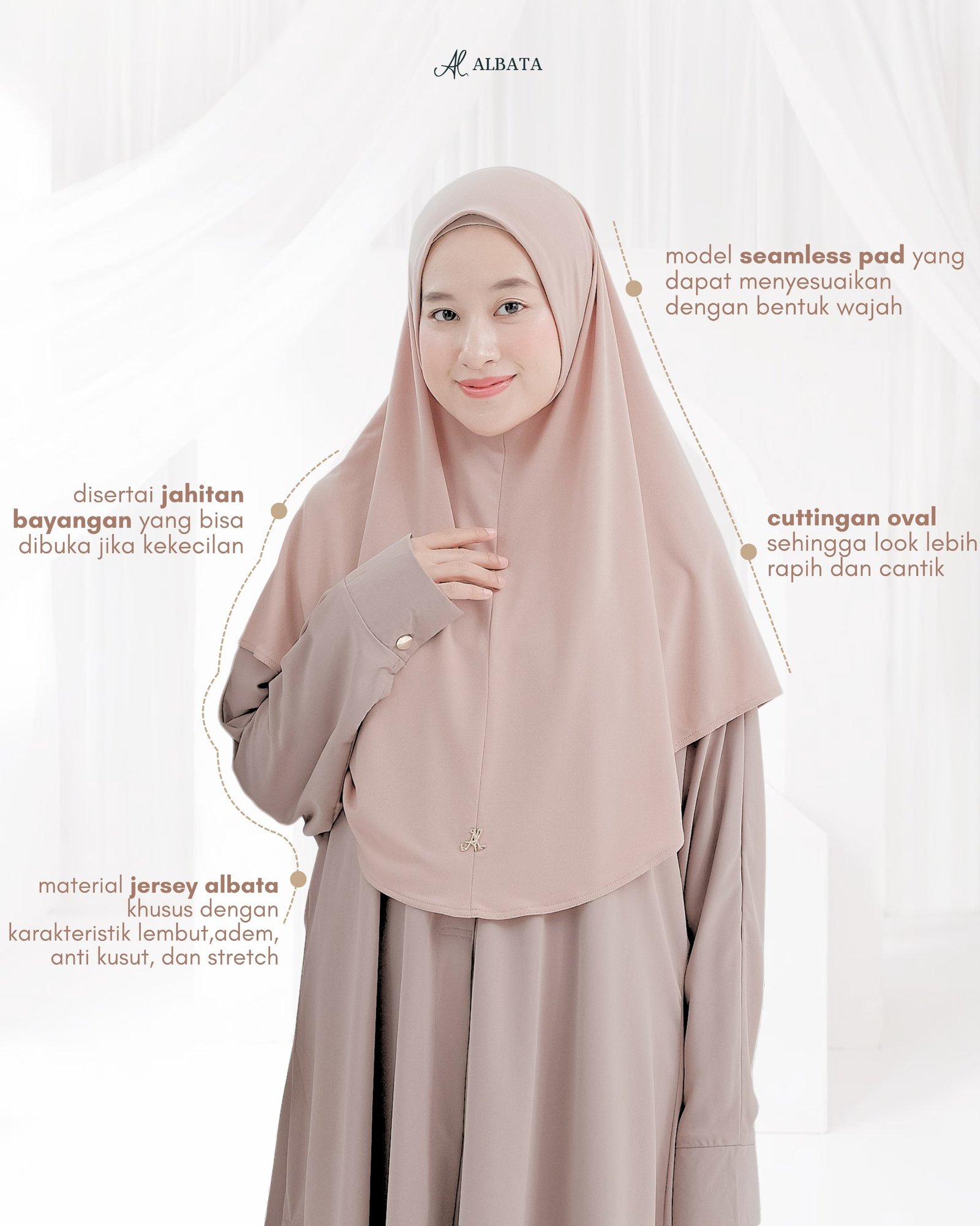 • Saat dikenakan terasa nyaman, adem dan tidak menerawang. Tidak perlu khawatir Hijabnya tidak akan nyeplak di badan.