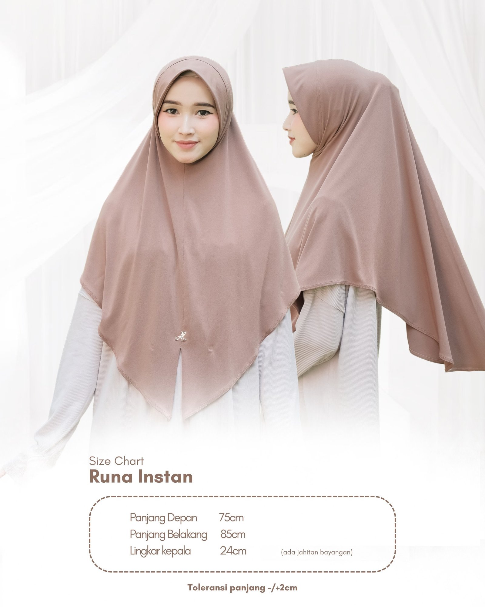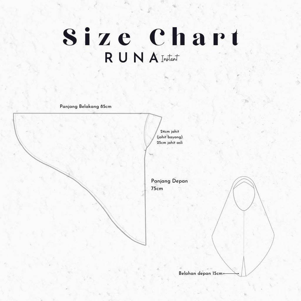 • Runa instan memiliki cutting yang naik di bagian pundak namun tetap menutup dada dan punggung